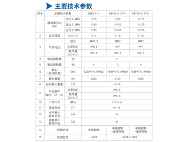DQ80/0.5、DQ100/0.5(Y)、DQ120/0.5(Y)型氣動單軌吊車